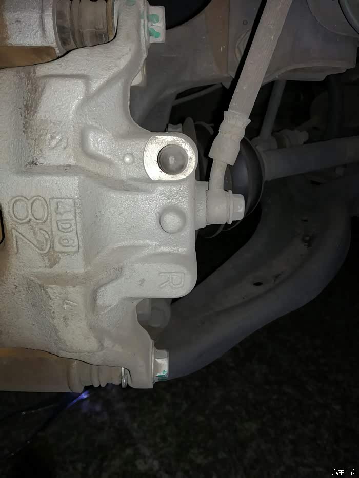 卸掉下面14毫米螺丝就可以油缸卡钳,露出的就是两片刹车片和通风刹车盘。