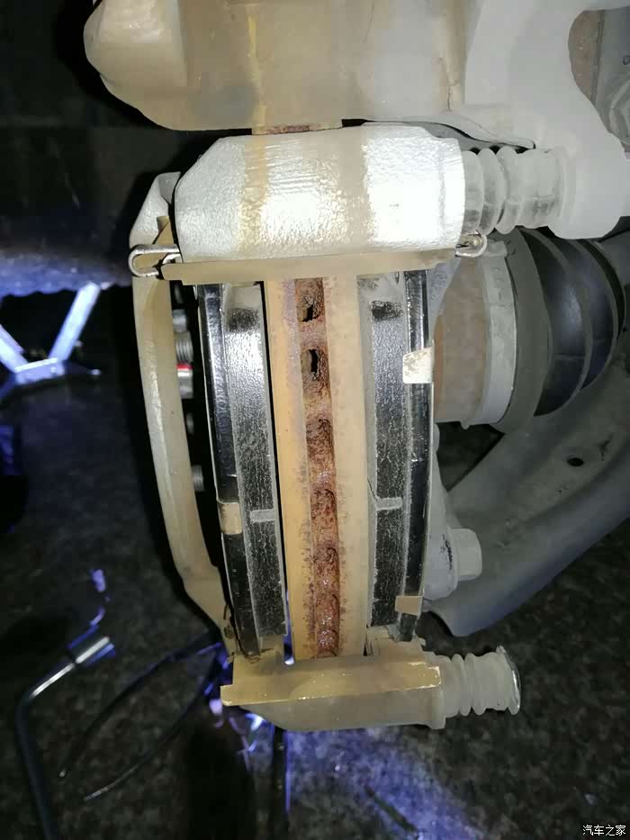 刹车盘生锈严重,不过这是生铁的,免不了,毕竟不是不锈钢的。