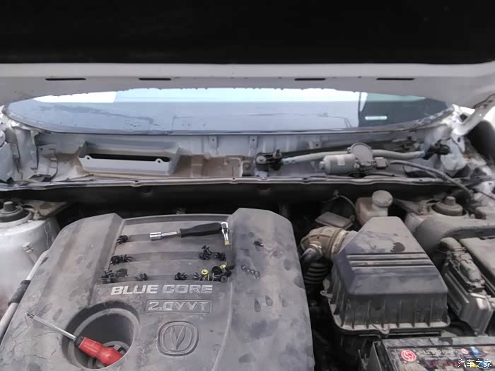 长安CS75水温显示低,更换节温器,一并处理前档异响问题
