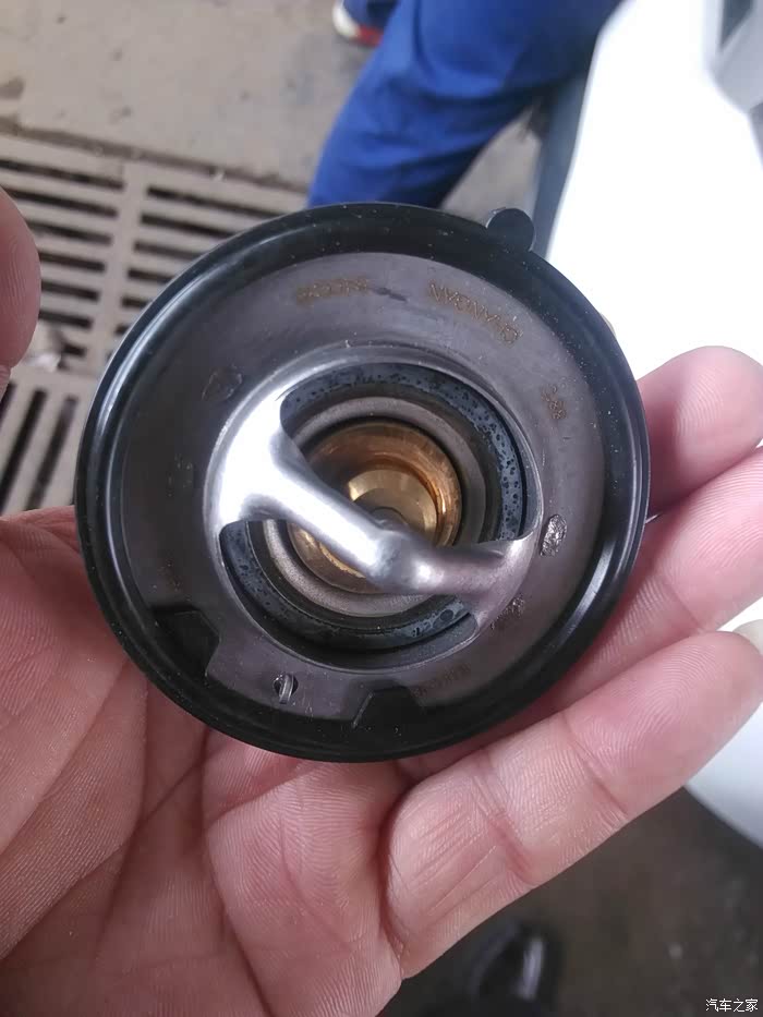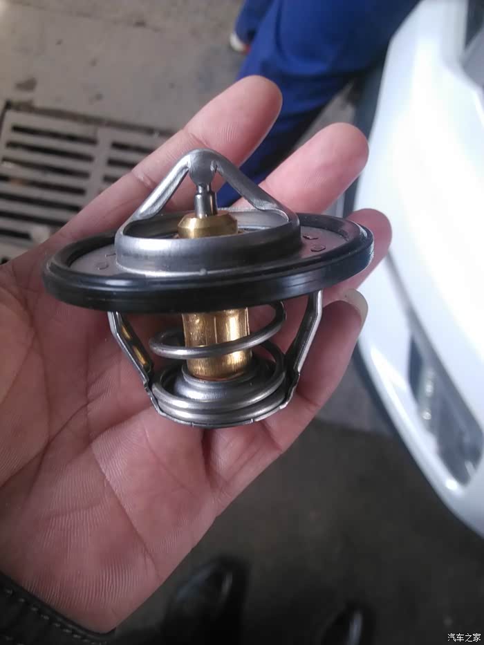 旧的节温器总算拆下来了,从外观看不出有什么问题。本人猜测有可能是弹簧压力降低了,在水温还没有达到88度的时候节温器就打开了开始大循环而造成水温低(化工行业温控阀称做提前量变大了)。