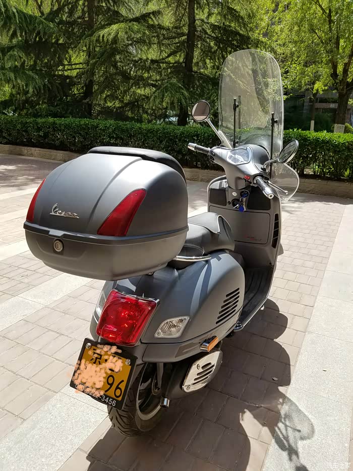 去年夏天把比亚乔FLY150(京A)出了,出门不方便,本来想买个电动车,开始定小牛,00宕机差点死人,赶紧退货,小牛说的好听,马上退,推三阻四的2个多月才把钱退了,买了个五本电摩,请哥们改了磷酸铁锂电池(三元的不敢用,怕夏天晒着了),30AH的锂电池,开始以为市区里怎么着也能够跑过100公里以上,结果就跑了60,可能是频繁的加速刹车导致的,再次购买摩托车提上了议事日程,问了几个好朋友,开始想买来BMW650,专业修理这个的哥们说故障率太高,一吓,不敢问了,加上国内无法订LED大灯的包(歧视),不了了之了,问了铃木安AN650,摩托车杂志的兄弟热心给了上海经销商和北京经销商的电话,都说不做了,雅马哈TMAX530不错,问了一圈大贸的,有14款待,16款的没有,这个也歧视,最后只剩下VESPA了,先让兄弟们打好前站,然后去了经销商店里,超级运动版的只有深灰色的,一看还行,付款开票,因为快过年了,没人上牌子,只能年后。