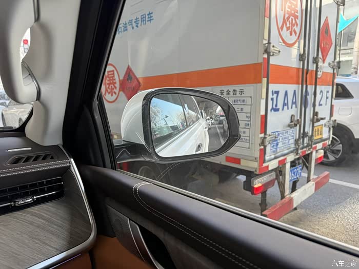 外后视镜监测到右方车辆进入了我的大坦克的盲区以后,液晶的仪表盘清晰的显示出了相应的图标。如此一来,对于驾驶车子的来说心里也就有谱了。