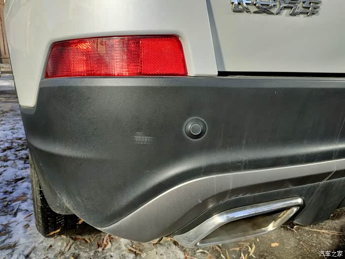 车子尾部装了4颗倒车雷达。倒车的时候能及时的发现车子后部的障碍物。