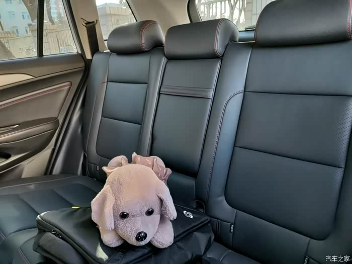 来让我的小狗狗也出个镜。后排座椅宽大舒适,坐三个成年人也完全不觉得憋屈。