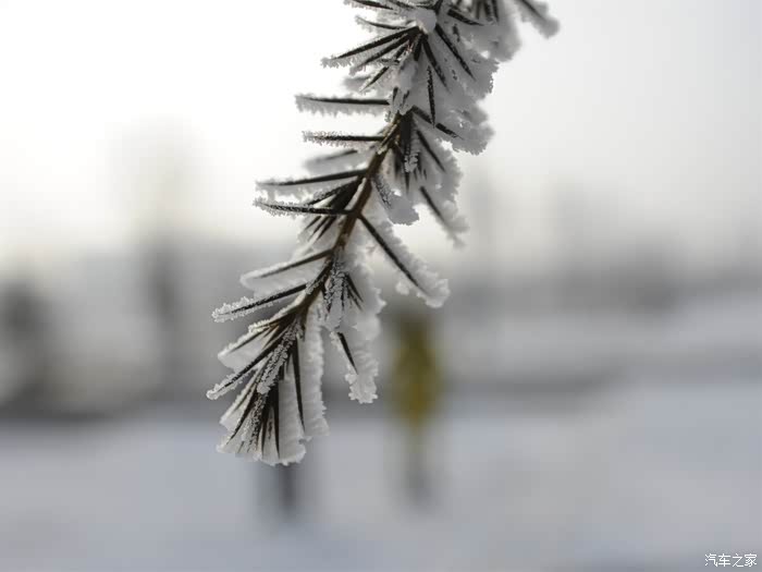 路旁的树枝上都是一层白茫茫的冰霜。