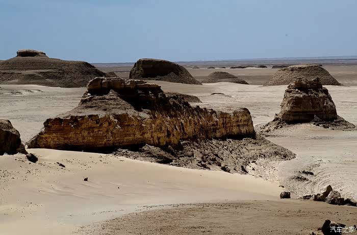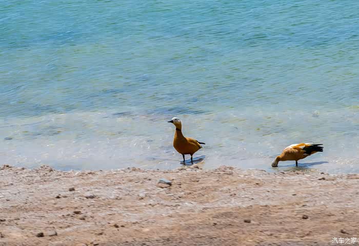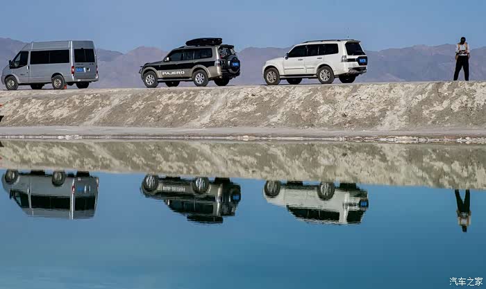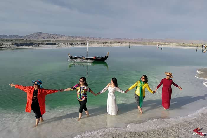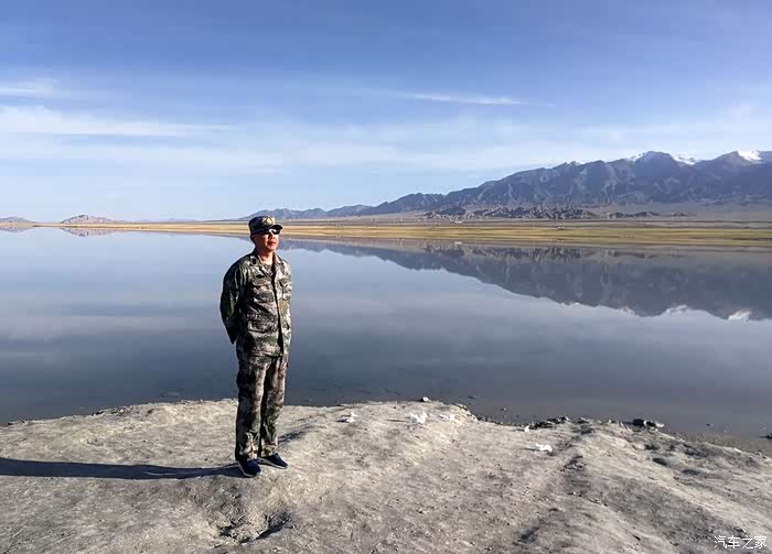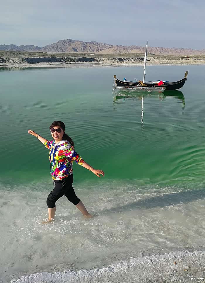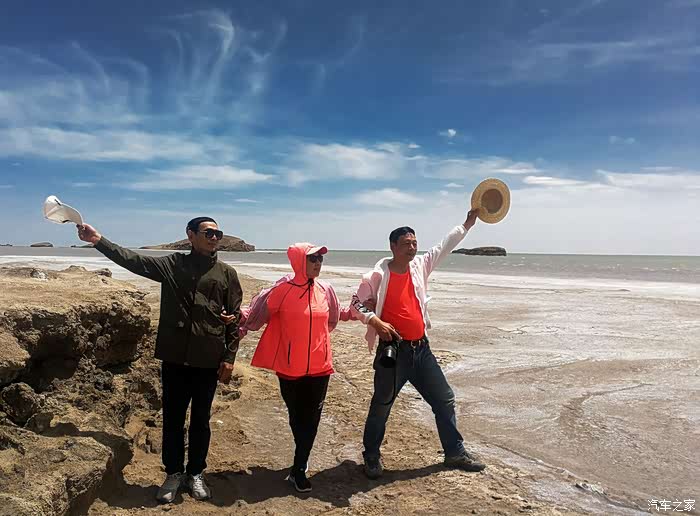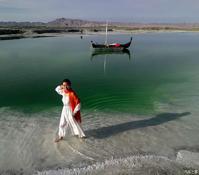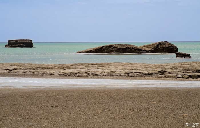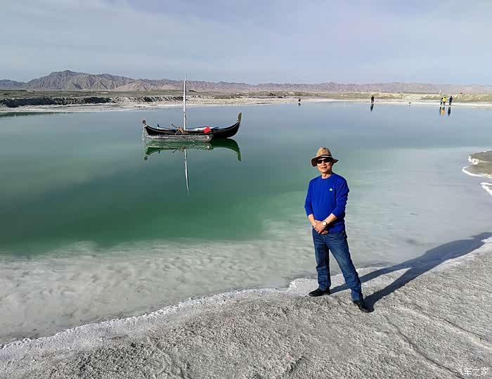 我们前行约10公里,将车开到湖边,看水上雅丹