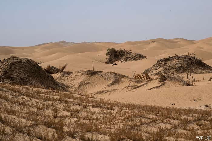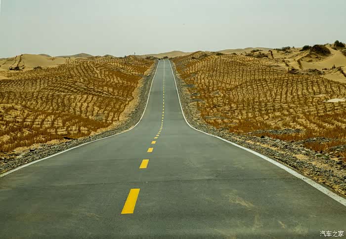 新建的柏油路十分好走,路边这些“芦苇栅栏”加“芦苇方格”是用来固沙的