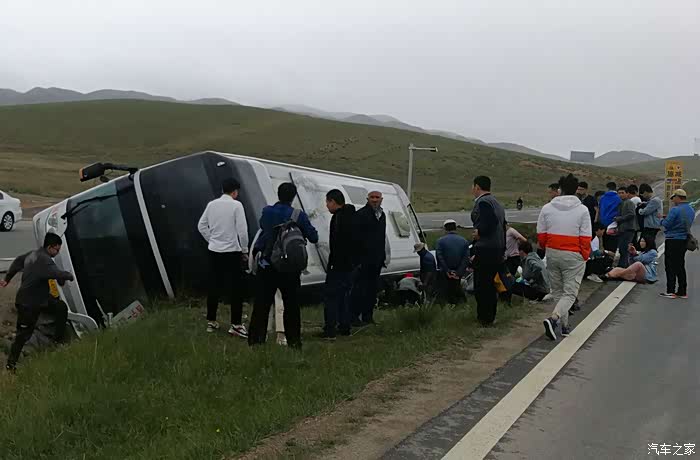 出青海湖,在倒淌河上高速不久,11:40 一辆大巴侧翻