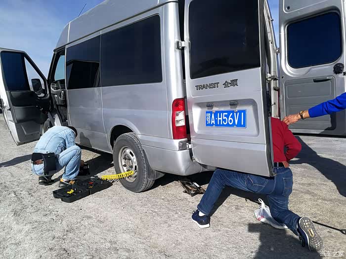 9:00,福特全顺左后轮胎,气门芯漏气。幸好同行的2号大山猫准备了充气泵,解决燃眉之急