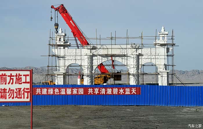 随着游客增多,这里正在建设景点设施,景区大门就要完工。7:30出发,大约一刻钟就到达这里