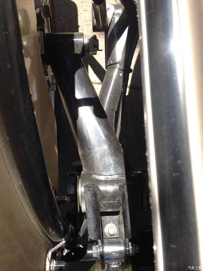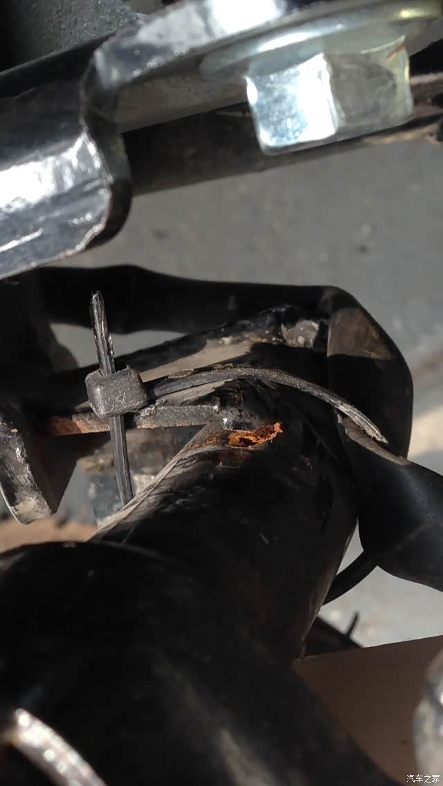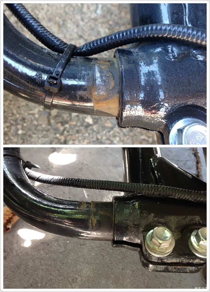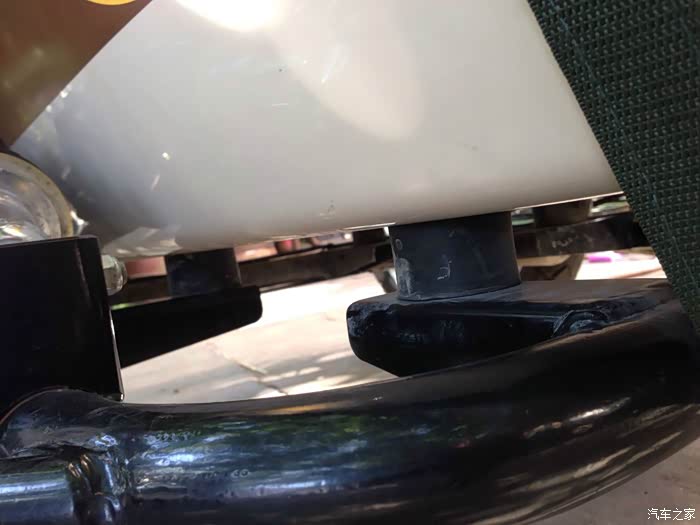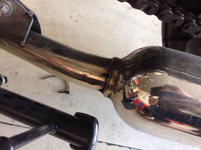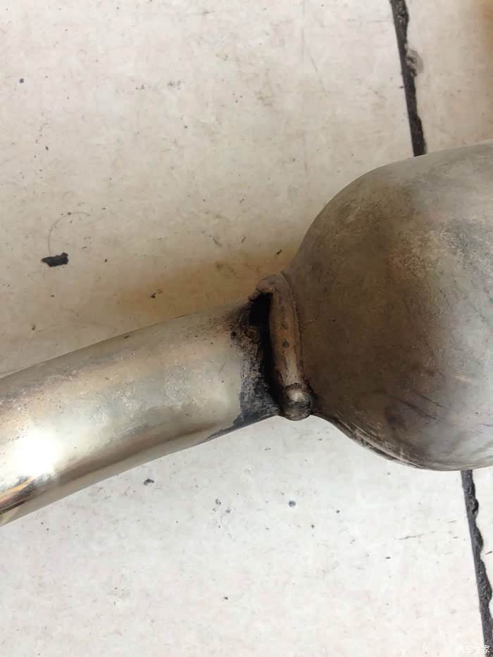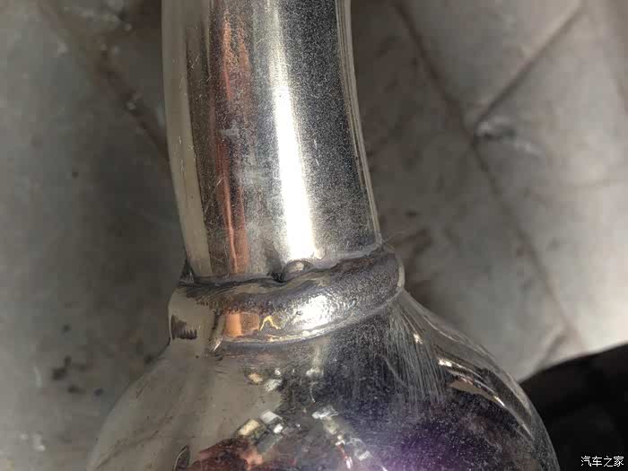 排气管连接处有一个小洞,可能是焊工师傅走神了,这个小洞会有尾气飘出,用电焊点了一下解决,这品管让车友如何放心。