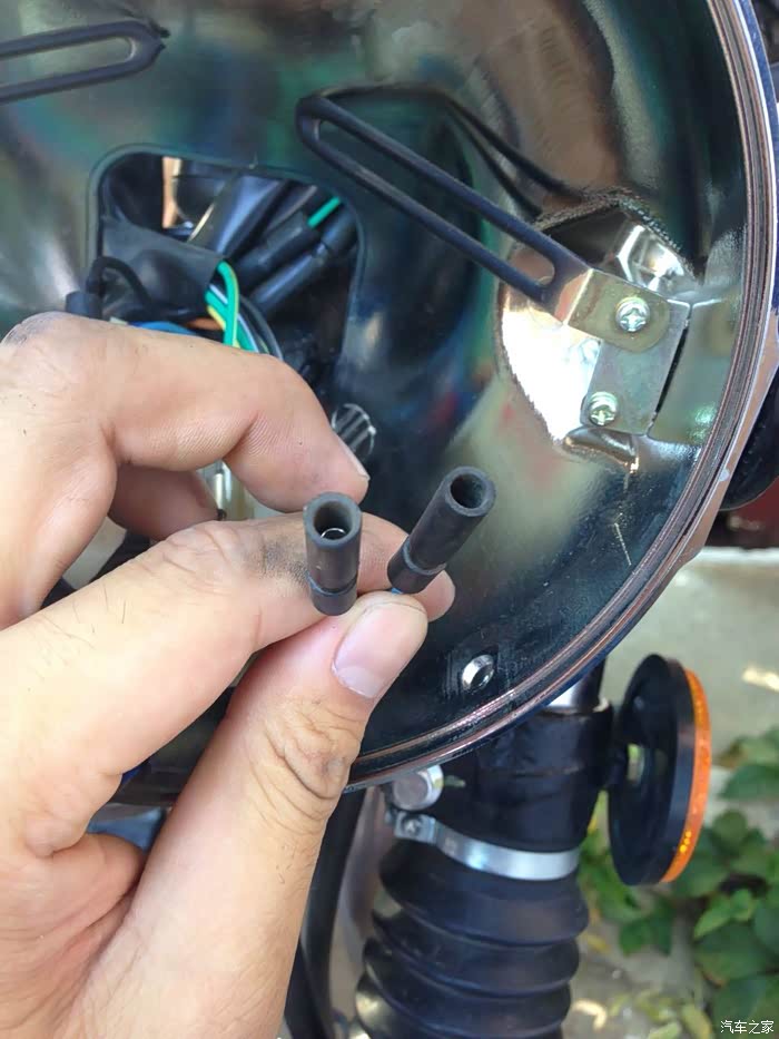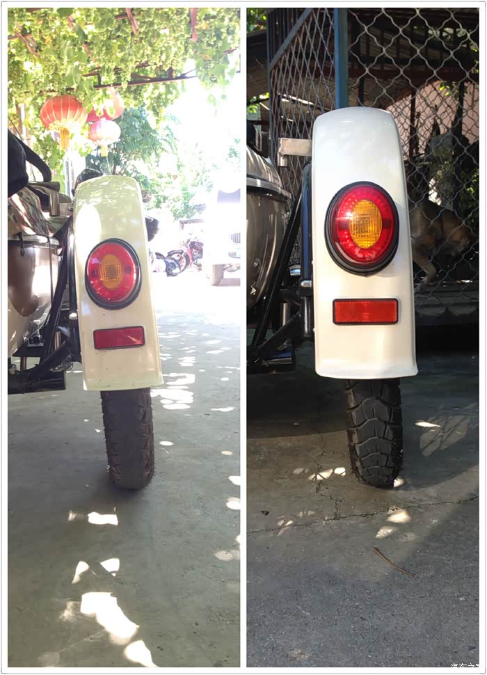 灯壳内走线简洁,多出来的预留线是车头右转向灯线,在三轮版本,右转向灯在边泥瓦上。