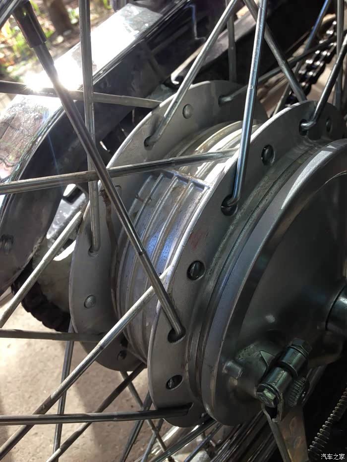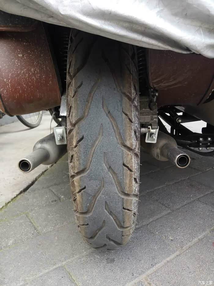 后轮为拐形辐条,车胎较前胎宽。总所周知,鑫源是没有备胎的,如果车胎出现问题,则只能补胎了。