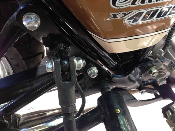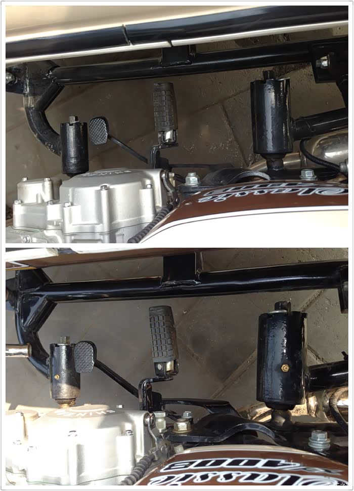 鑫源四百的单机版本是带有脚踹启动杆的,因为在右侧,三轮版本只能取消了,但保留了接头。