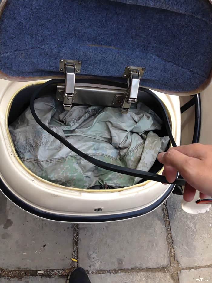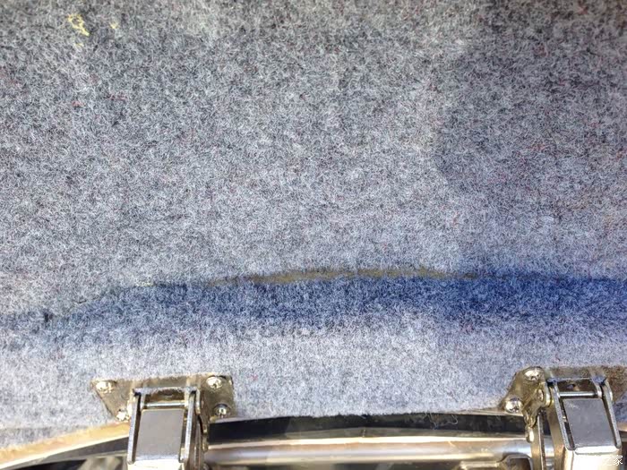 后备箱上盖同样贴有毡子,但第三批以后的车型,毡子就取消了。后备箱确实较老款750防水密封性好很多,开有导流槽和密封胶圈。