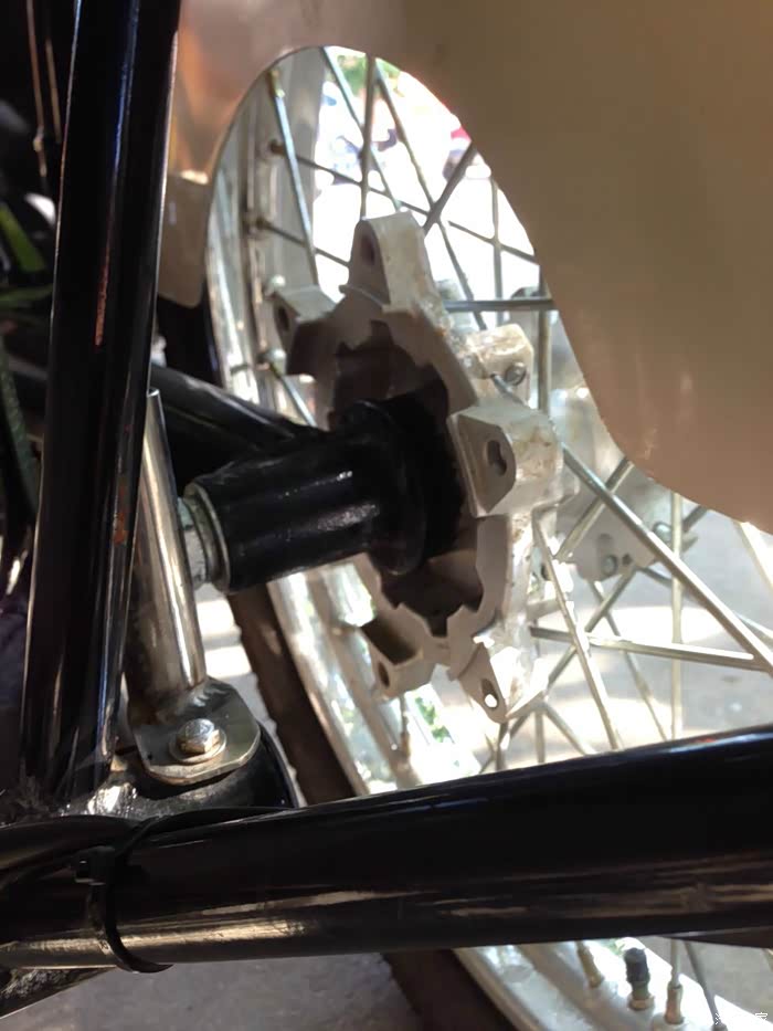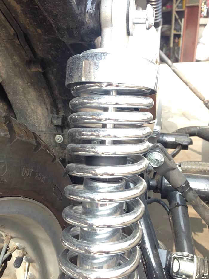 侧支撑连接件也还在,但没有了侧支杆。并且鑫源三轮是没有大支撑架的,为维修换胎造成了不便。