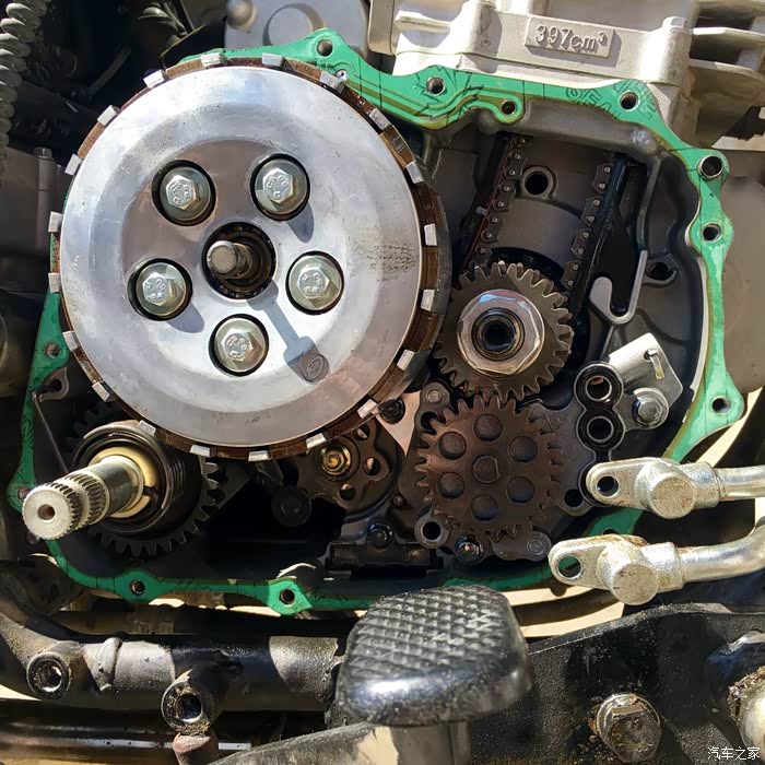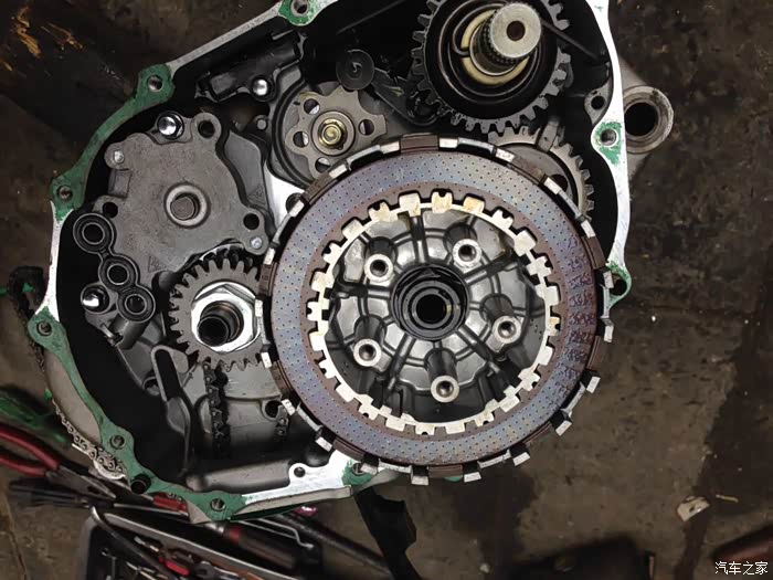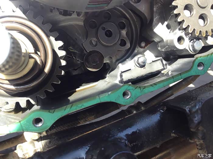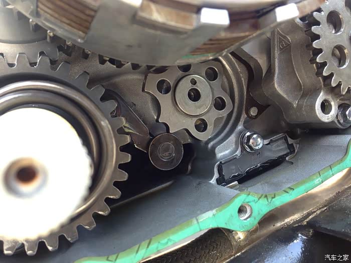 在湿式多片式离合器的下方,就是五星齿轮,开始厂方给出的解决方案就是紧一紧齿轮,真是无语了,紧一紧就解决的问题,怎么能下生产线并且贴合格证出厂,图中此时的档位是一档。