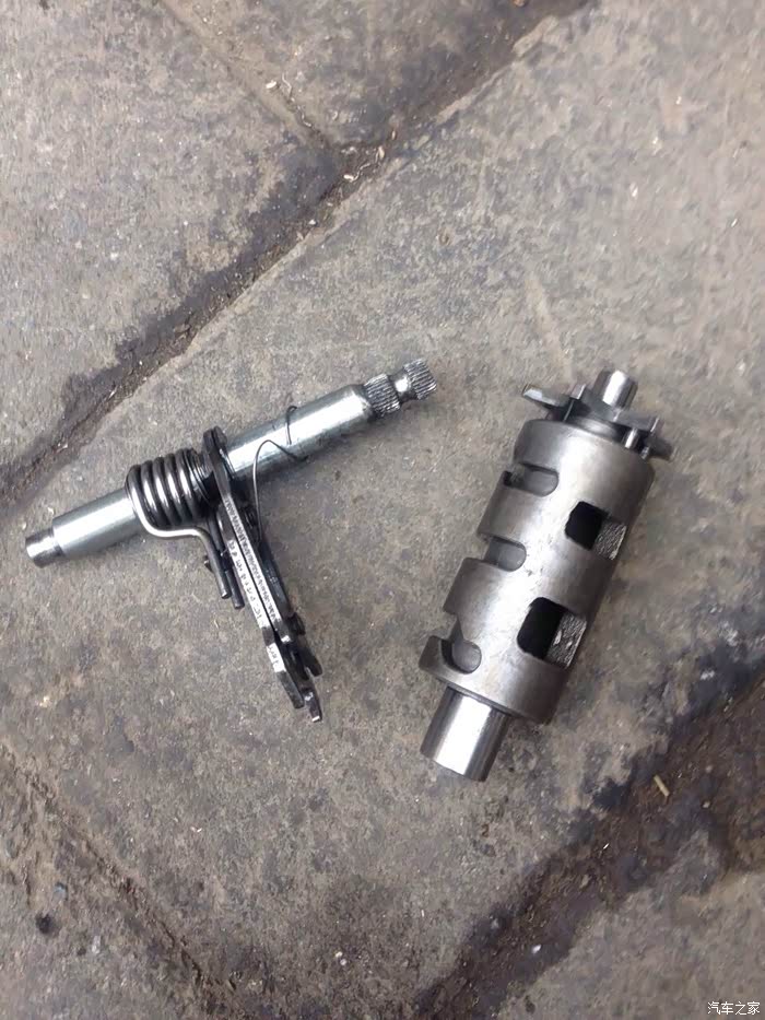 图中此时的档位就是二档,但是没有入位,这也就是鑫源400国棍二档挂不上的根本原因。其实就是换挡凸轮坏了。