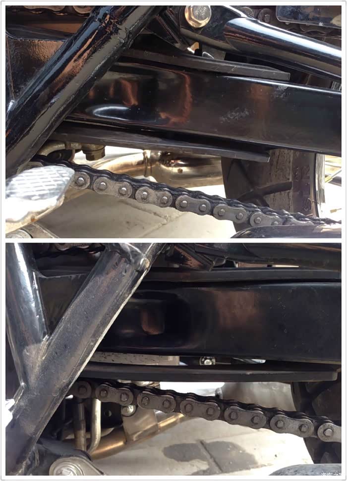 链条橡胶垫直接开口,怎么也装不回去,蹭链子。据车行说链条采用了520征和油封,是国内最好的链条,不知真假。
