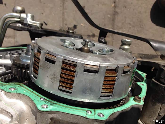 采用湿式多片式离合器,位于发动机右侧。
