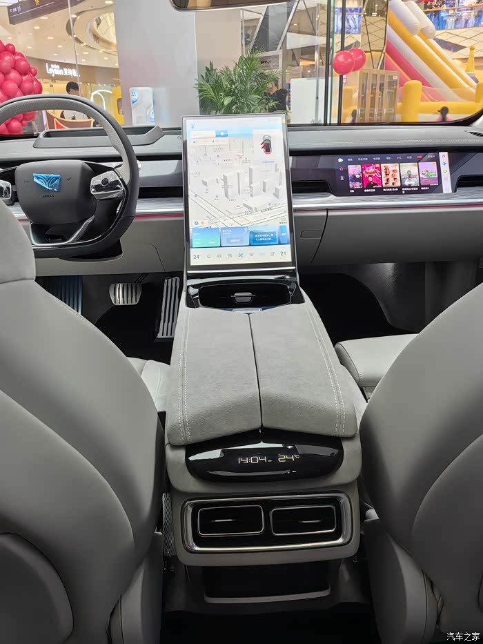 哪吒S搭载了全新的第三代骁龙座舱平台,17.6英寸的中控触摸大屏、13.3英寸的全液晶仪表盘、12.3英寸的副驾驶娱乐屏,三块大屏组合视觉冲击力十足,营造出强烈的科技氛围,车内绝大多数功能全部集中在这块大屏上面,如座椅功能调节、外后视镜调节、后备箱、温度等功能都可以通过大屏操作,让人感到惊喜的是经过多轮人机工程校核与试验的中控屏幕操控流畅度很高,不会出现卡顿情况,使用起来非常轻松。