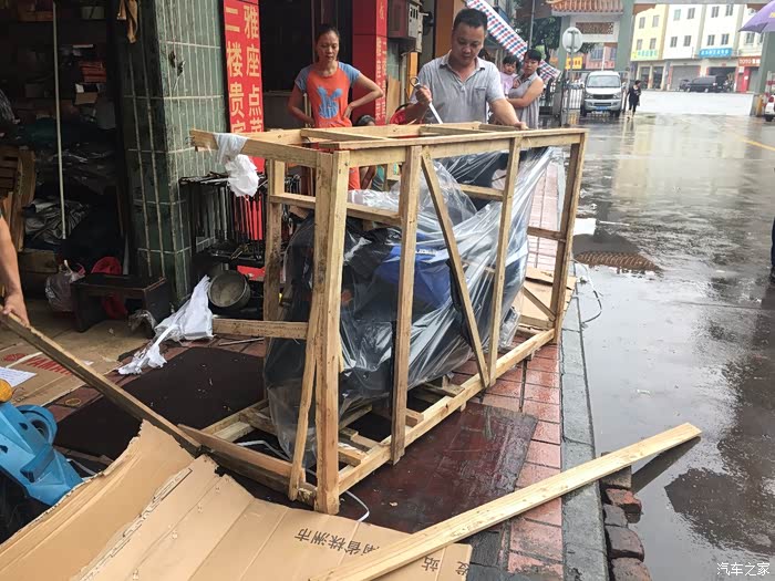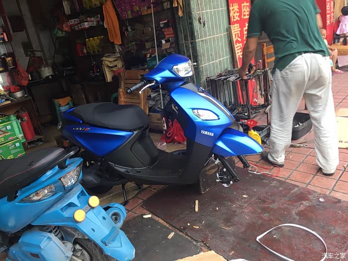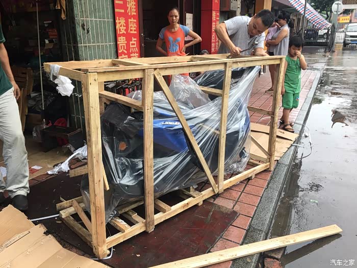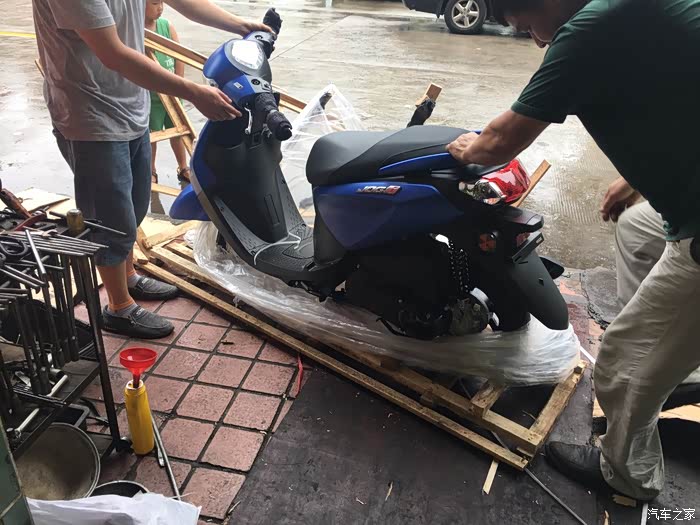 新车自己不会装前轮与电池,决定叫快递送到修摩托车的店铺去搞,一共装上轮子与电池,加送一升汽油。35元。良心价格!