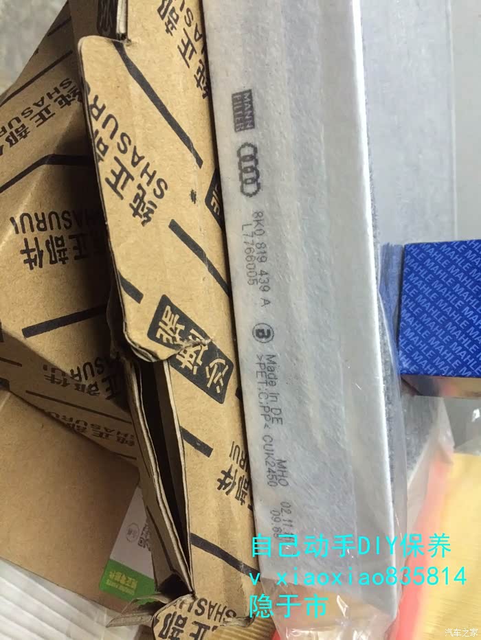 我在A4L论坛发过一篇详细的DIY换机油帖,可以先去温习一下,还有火花塞没到,到了就换火花塞!到时再分享出来!!!
