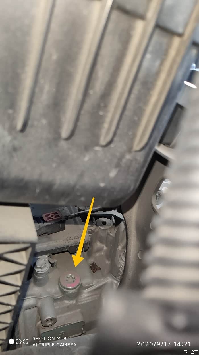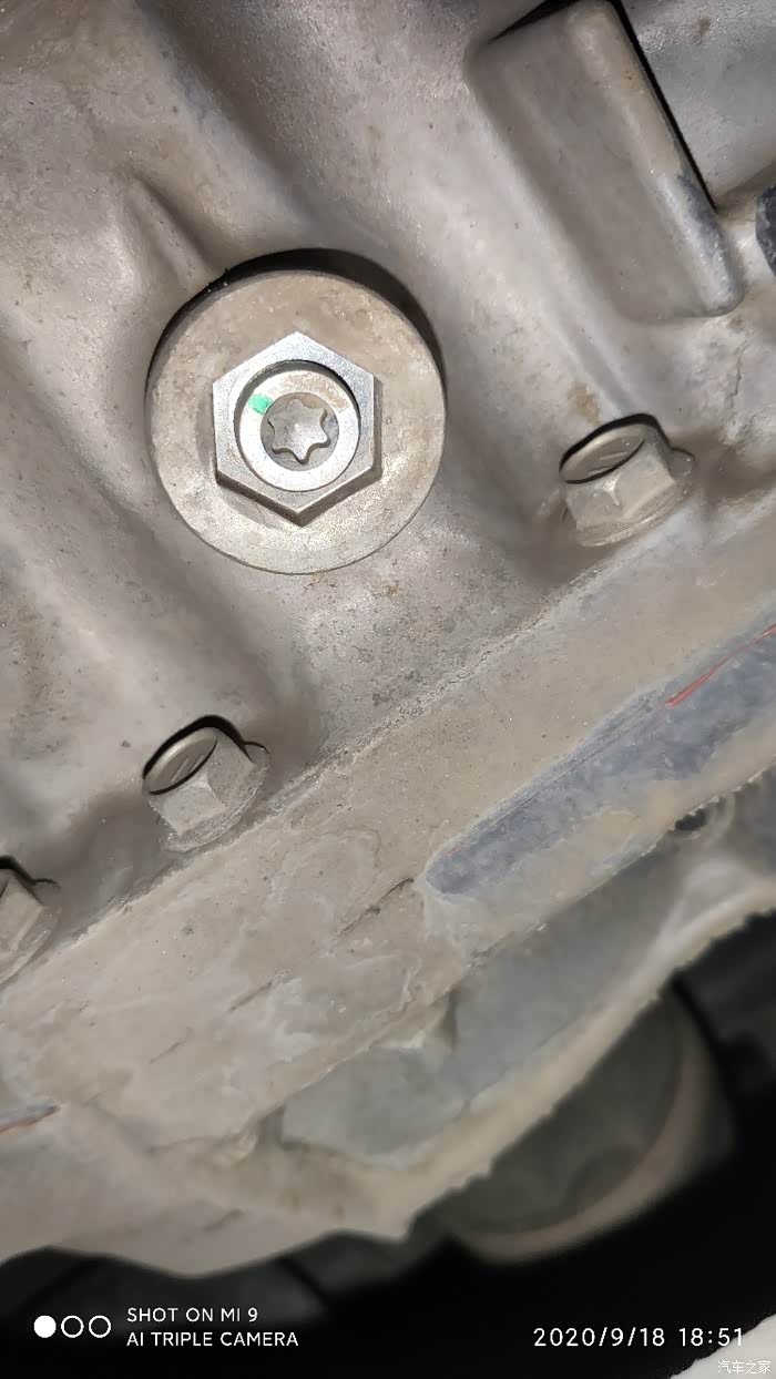 找到变速箱加油螺丝了,空滤旁正下方,六角梅花螺丝,多大型号内六角梅花扳手
