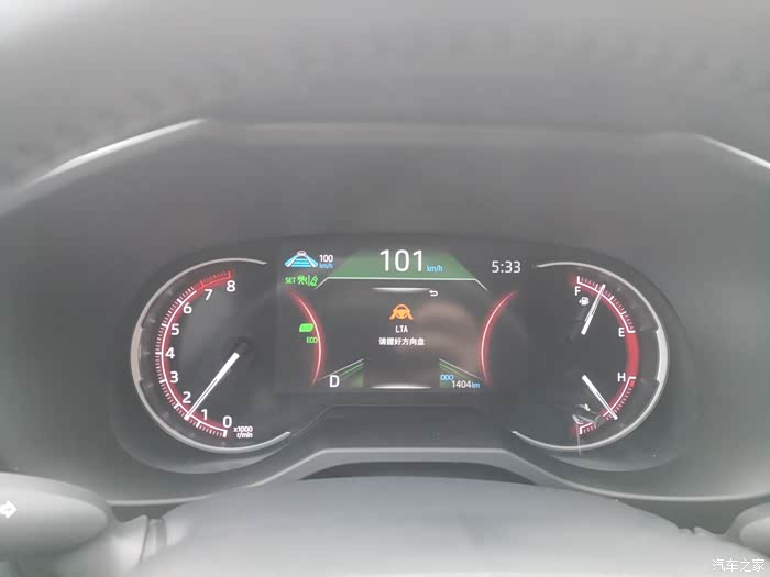 开启自适应巡航视图,显示左右车道识别情况,跟车距离长度,前方有车时会显示一辆小车的图像!