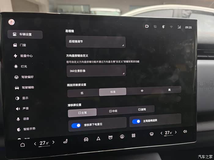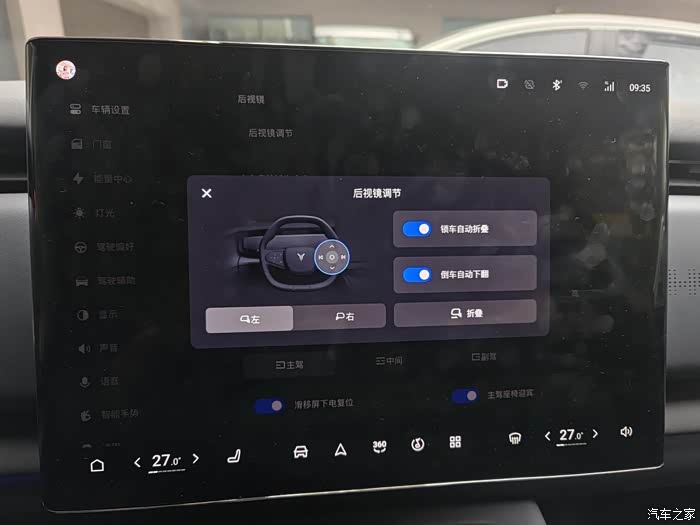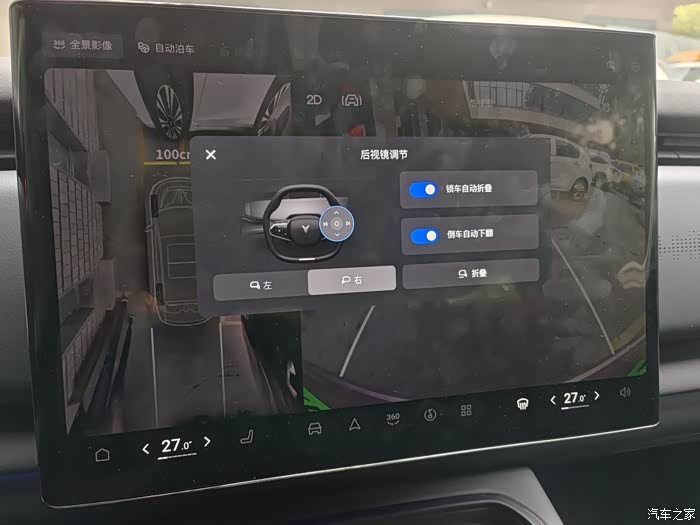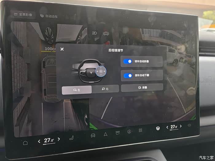 刚提了车,挂倒挡时只有右后视镜下翻,左边幅度几乎没有。在常规的车辆设置——后视镜调节页面,调不了下翻角度