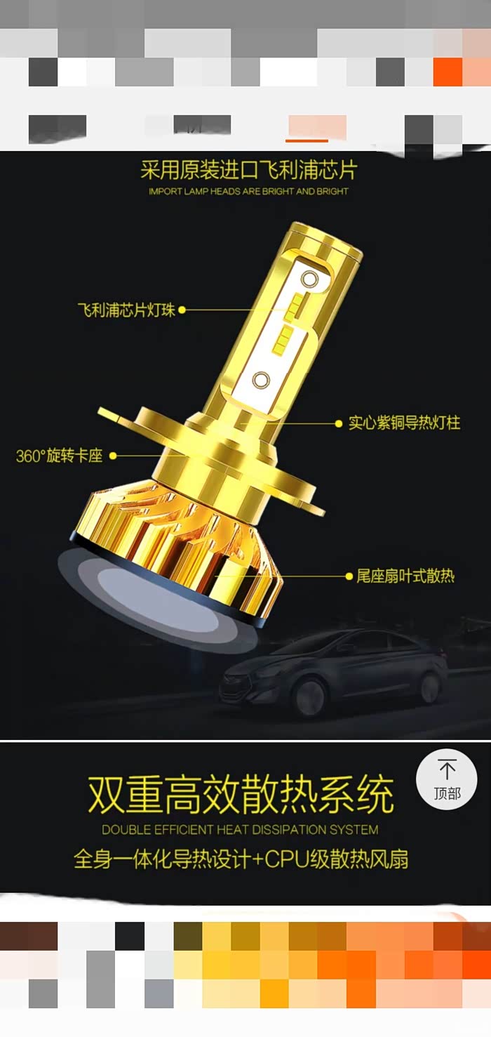灯泡结构图,建议大家购买带散热风扇的,可以延长灯珠的使用寿命,保护大灯灯罩。