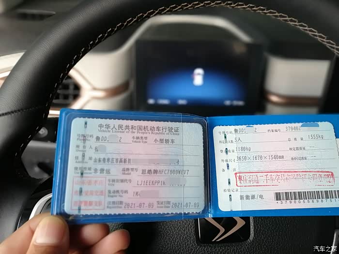 4S店的思皓E10X首保流程,首先是拍车头,然后是行驶证和仪表盘的合影,最后还要给首保凭证填写信息,盖章后拍照,