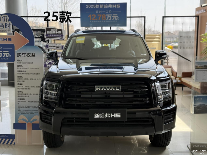 25款哈弗H5我觉得一个主打的点就是外观了,第一眼到店看到实车,确实被它的块头镇住了,停在店里就比旁边的车大一圈,现在开回家停在小区里更是显得很独特。我选的就是主打色黑色,我觉得这种硬派SUV就黑色有气势。做工方面,这个价位的车,我觉得算是合格的,车身缝隙看着还比较均匀,漆面也还行,没有发现缺陷,符合预期。