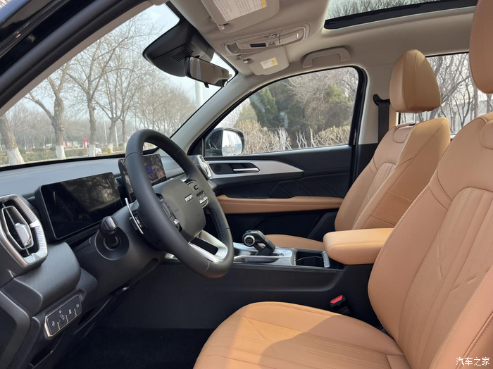 我选的是2.0T汽油版,目前还在磨合期,开车比较温柔,没敢怎么深踩油门。起步感觉不算特别迅猛,但速度提起来之后,感觉动力还是挺充沛的,日常在市区或者快速路上跑跑,超个车什么的完全够用。配的8AT变速箱换挡挺平顺的,至少我没感觉到什么明显的顿挫感。这车最大的特点之一就是带大梁的非承载式车身了,开起来底盘感觉特别整,过减速带或者走一些稍微有点坑洼的路面时,信心比以前开轿车足多了,没有那种很强烈的冲击感。