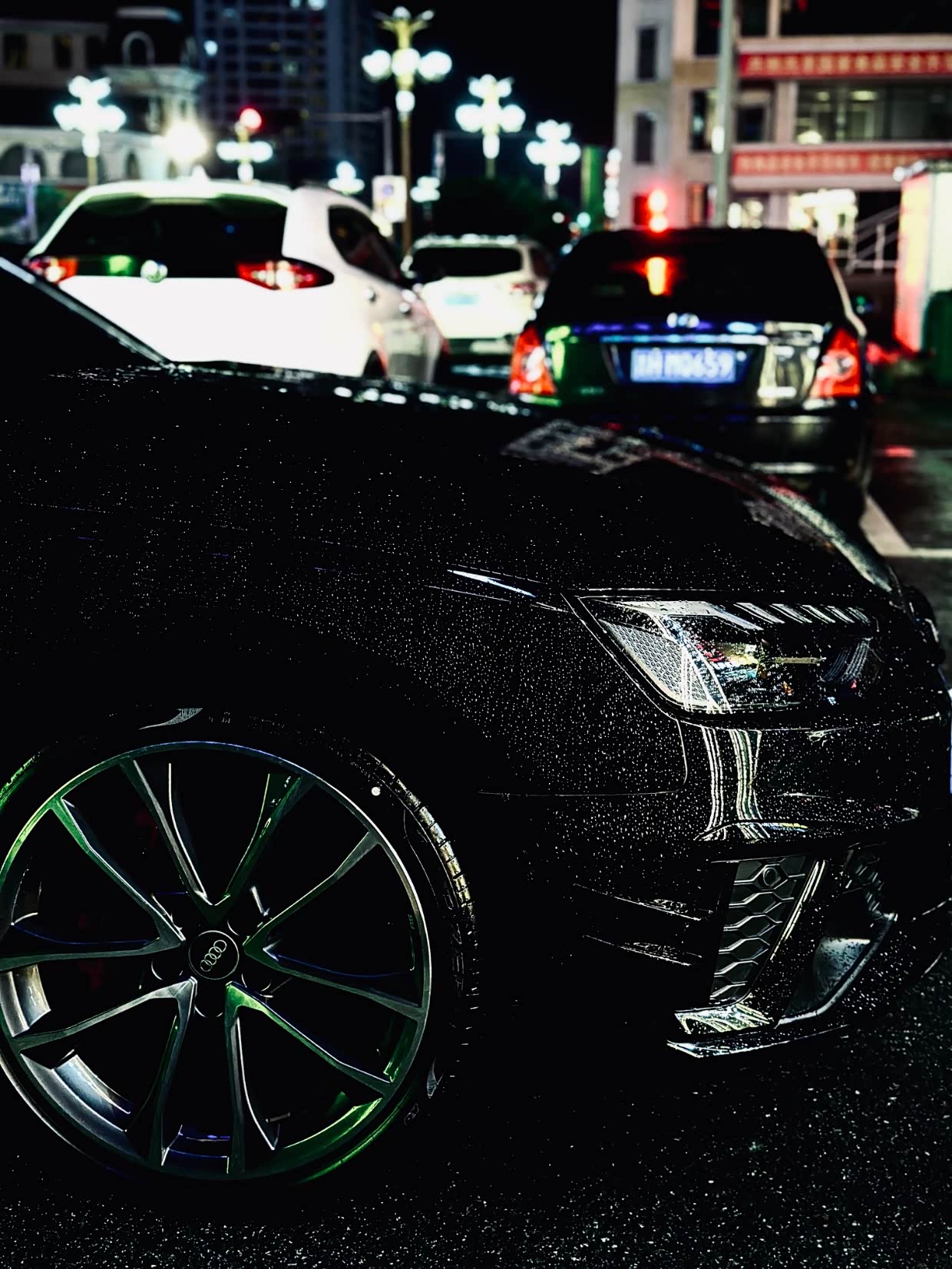 夜晚雨天下的小黑4很漂亮