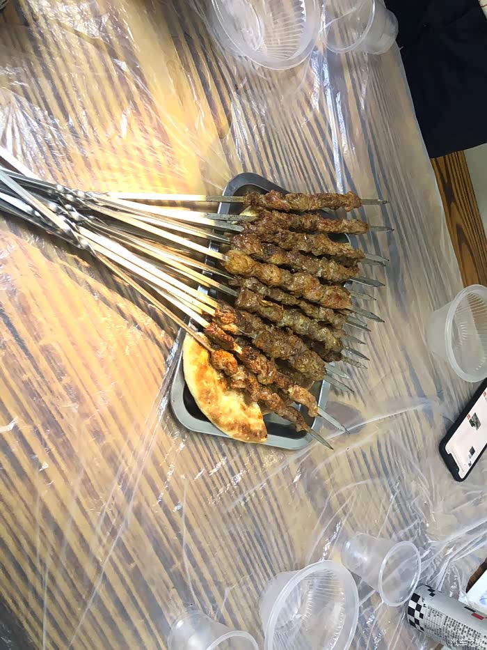 不知不觉夜晚降临,找了个口味比较好的烧烤店,还买了隔壁的正宗羊肉串。