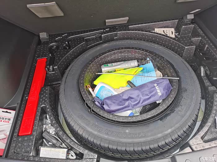 非全尺寸的小备胎,看上去很小,应急用一下完全可以。