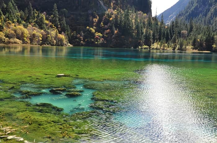 神奇的九寨水、五色湖、五彩池、瀑布到影、