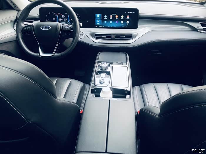 就这个前排主副驾驶来说,虽然是铂领,但座椅也还是支持电动调节的,车内饰也基本上都是皮质包裹,整个中控台的设计很简洁,功能按键也都是集成式设计,双联屏视觉效果也很好,内置的腾讯TAI3.0车机系统用了一年了,也还是如新车一般流畅,每个月赠送的流量基本上都是用不完的。