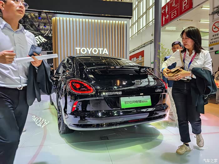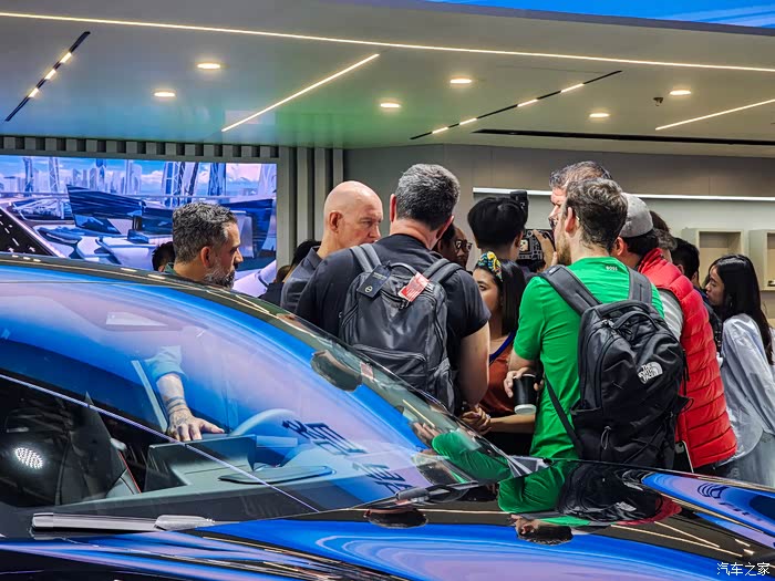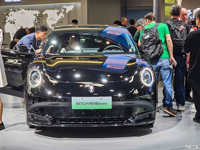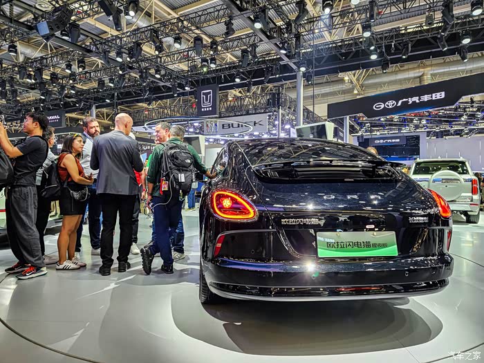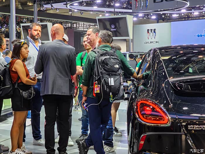 我们来的时候展台上还没有那么多人,一会功夫闪电猫耀夜版身边就围了一大堆人,还都是老外,原来咱们都是去看老外的车,现在咱们国家技术越来越发达,这个画面终于反过来了,为国家的兴旺点赞!