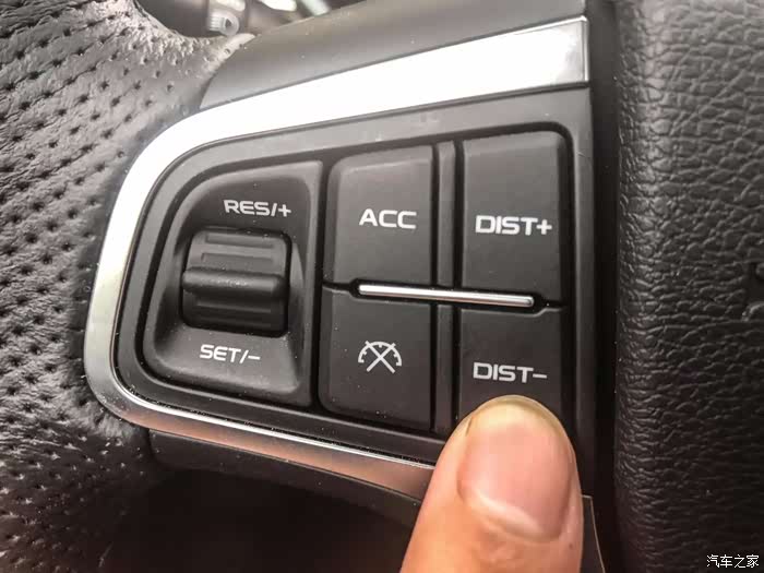 接下来,详细来说明下ACC自适应巡航如何使用,点击ACC按钮,系统就开启了,DIST+-是可以自己调节和前车的安全距离,最左边的滚轮是自己设定的速度以+-1的速度值进行加减,ACC下的那个按键是定速巡航。开启ACC,定速巡航也是会一同开启的,不过,你只需调节好和前车的安全距离,那就可以放心啦。设定时速只是在前方没车的情况下,会根据你设计的时速行驶,这样也不会有超速的情况发生。