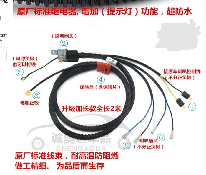 这是接线说明比较详细(加装继电器可以保证鸣笛时喇叭不变声,还可以保护原车线束不会因为多出一个供电项负载过大而导致过载)