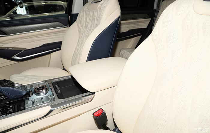 内饰设计也是和众多硬派车型不一样。悬浮式中控屏、水晶档把、多功能方向盘等科技感十足。其次空间也够大、坐在任何一个位置都能轻松翘起二郎腿,座椅肉眼可见的宽、大、厚实,舒适度非常不错。说真的,我很喜欢这样的氛围感...