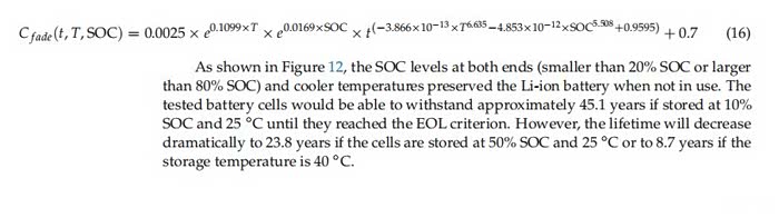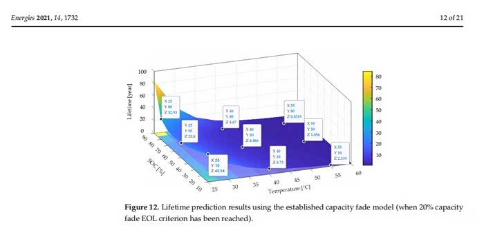 10%的电量在25度下居然有45年的预期寿命,80%是32.93年,50%是23.8年。