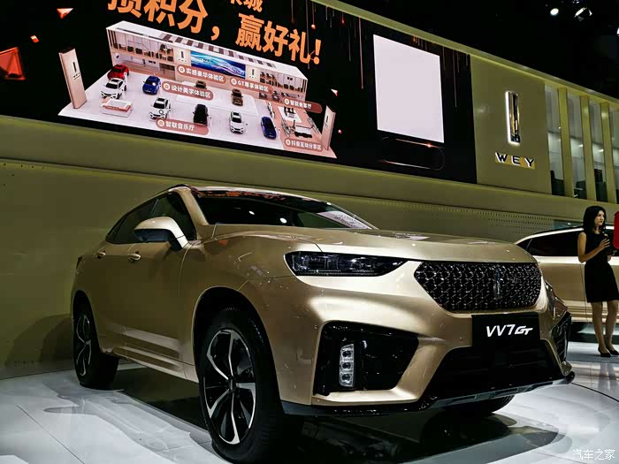 走进展馆左侧就看到了WEY品牌的展区,在***台中央位置就一眼看到了VV7 GT的身影。