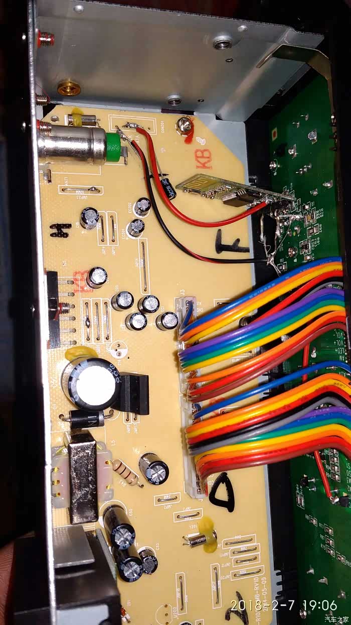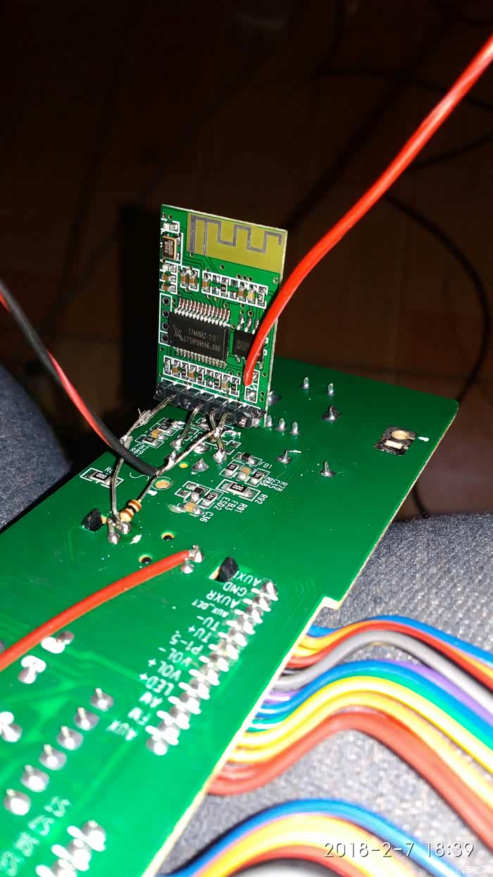 装好了试一下,一切正常了。音频,收音按键变成了蓝牙收音转换键。音频输入指示灯成了蓝牙状态指示灯,还被我改成绿色。一闪一闪挺好看的。播放????也一切正常啦!改装完成!