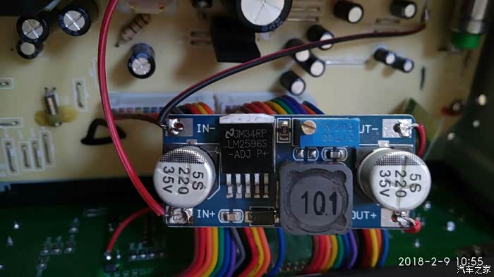 无奈单加一个直流降压模块吧,电压提前调好在上机。用万用表调到4伏多点,因为蓝牙模块我去掉降压二极管了。