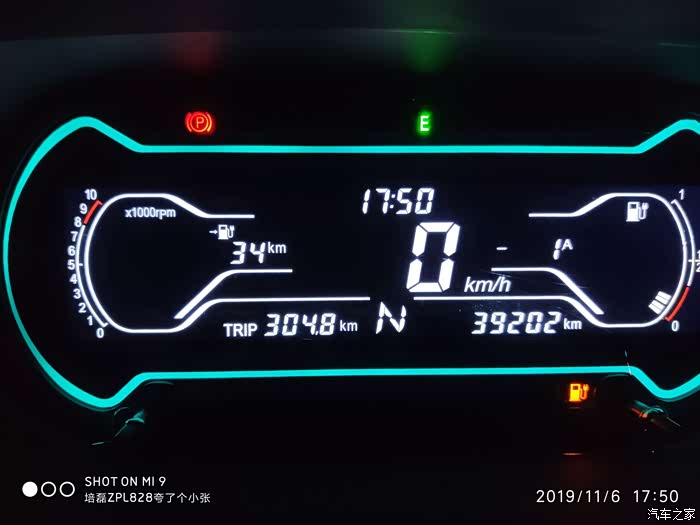续航剩余65公里时,低电指示灯亮起。此时总续航348
