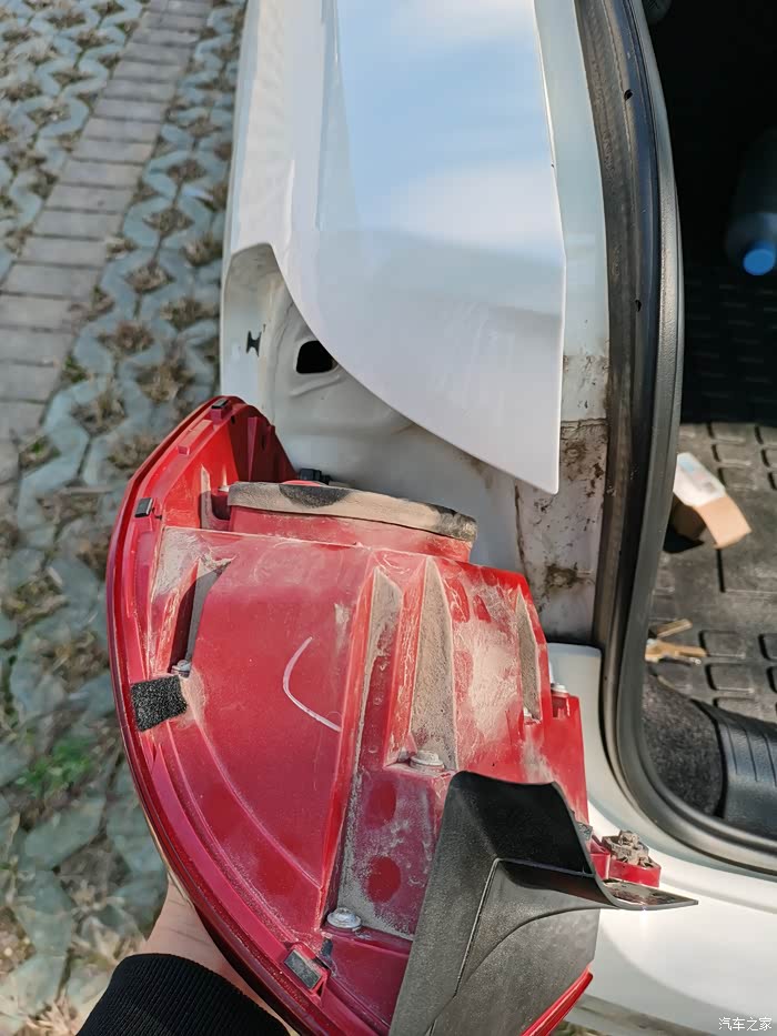 外侧尾灯的整体就是这个样子的,内侧还是有很多灰尘的。