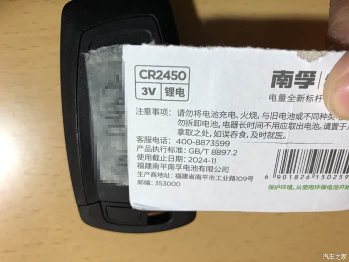 【爱车作业大征集】大家好,我是西瓜宝马,首先给大家拜个早年,2020年祝福大家快快乐乐顺顺利利,出入平安,也感谢大家一年对我们汽车之家宝马5系论坛的大力支持和帮助,西瓜在这里给大家问好。一个小的作业,更换钥匙的电池作业,是F18的钥匙不是现在的刀锋钥匙的。其实还是比较方便,电池的型号是CR2450的,往上面买电池还是很方便的,索尼的松下的,森海塞尔的,其实国产南孚的也不错,一般来说1-2年是没有问题的,原厂的用3年也没有问题的,安装分三步,1、把机械钥匙取下来,2用机械钥匙别一下卡扣顶开后盖板漏出电池。3、更换电池并把盖板和机械钥匙安装回去原位置的地方,大概就是这样的流程废话不多说请大家看西瓜大家介绍的内容,谢谢大家。